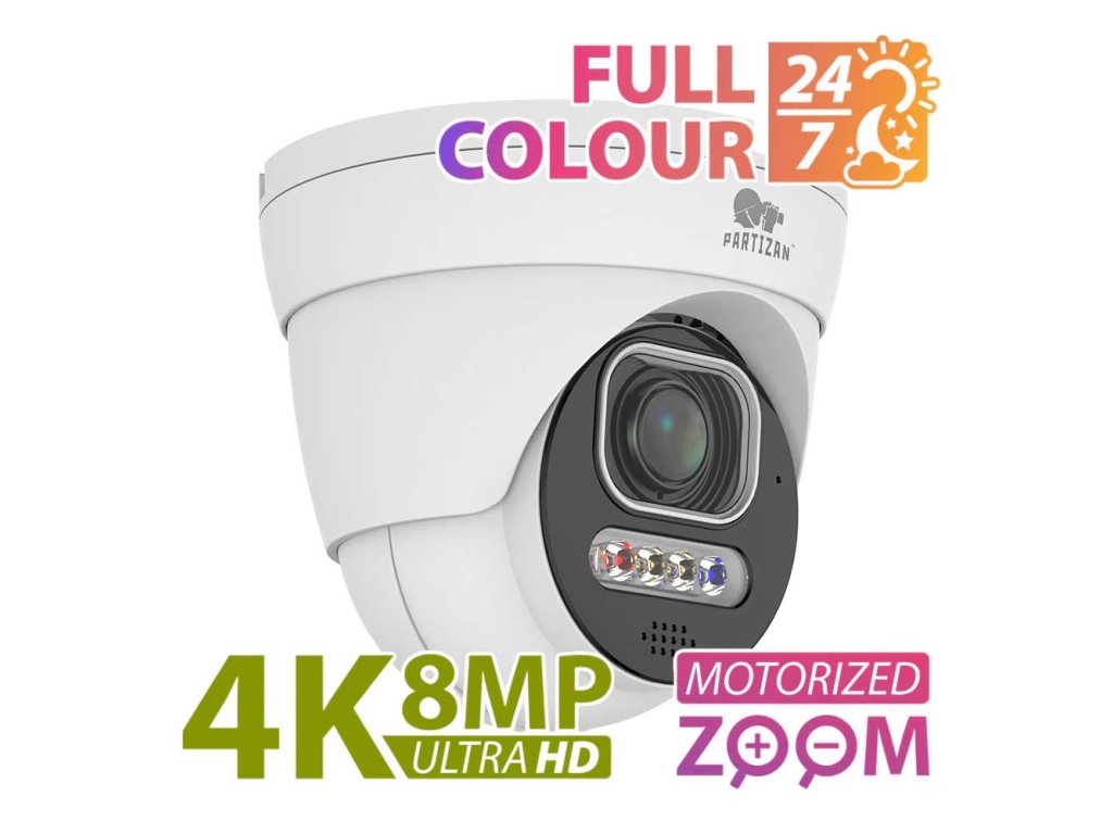 Ide o novú plne farebnú kopulovú kameru so snímačom 1/2.7″ CMOS, revolučným hybridným IR + bielym LED a rozlíšením 8,0 megapixelov. Vďaka modernému snímaču s rozlíšením 8,0 MP poskytuje zariadenie kvalitný prehľad o rôznych miestach a umožňuje jasne zaznamenávať tváre a poznávacie značky áut. Varifokálny objektív s automatickým zaostrovaním umožňuje získať maximálne detaily obrazu na rôzne vzdialenosti.